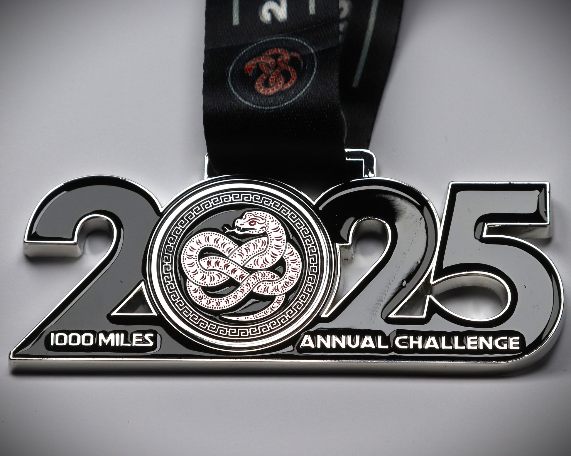 Step into the Year of the Snake with the ultimate endurance test — the 2025 1000 Mile Annual Challenge. Designed to keep you moving all year, this challenge will push your limits and reward your dedication with one of our most spectacular medals ever made.