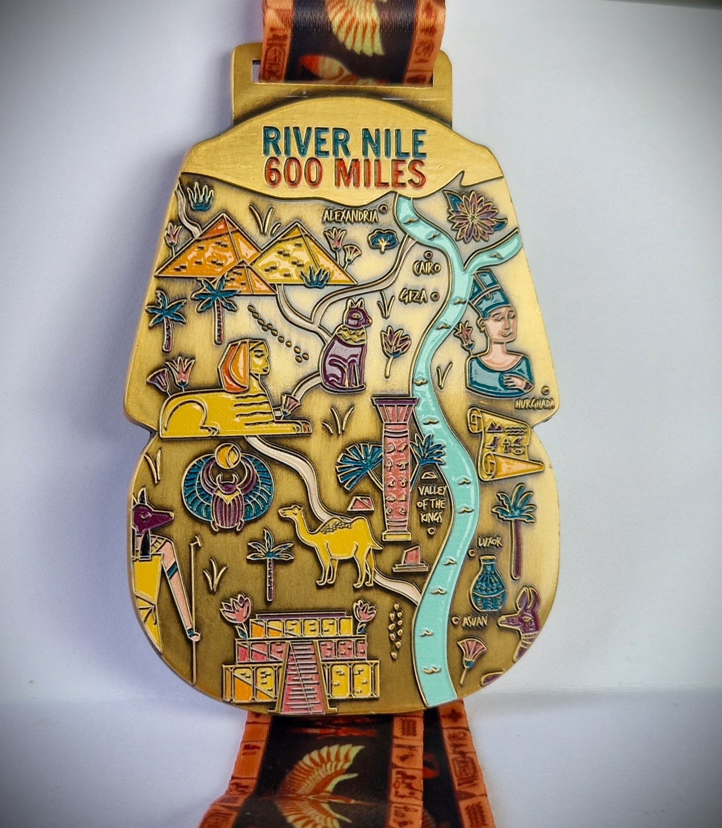 Your journey begins just north of Cairo and flows south along the Nile all the way to the Aswan Dam. The route is brought to life on our interactive map, and your progress will be engraved forever on the back of our biggest and most beautiful medal to date.