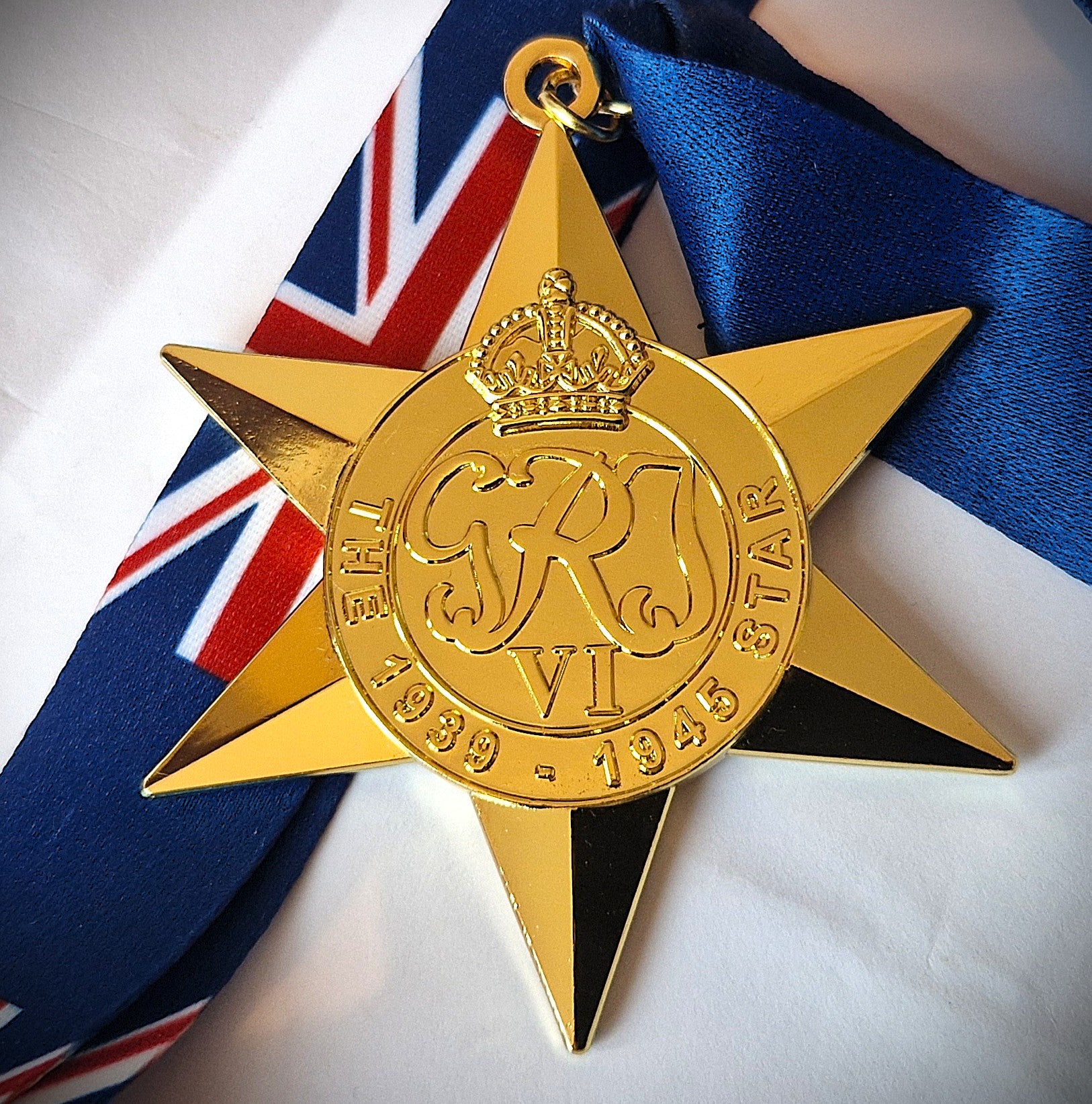 The front, paired with its ribbon, is a faithful recreation of the ‘1939–1945 Star’, awarded to all who served operationally during the Second World War.